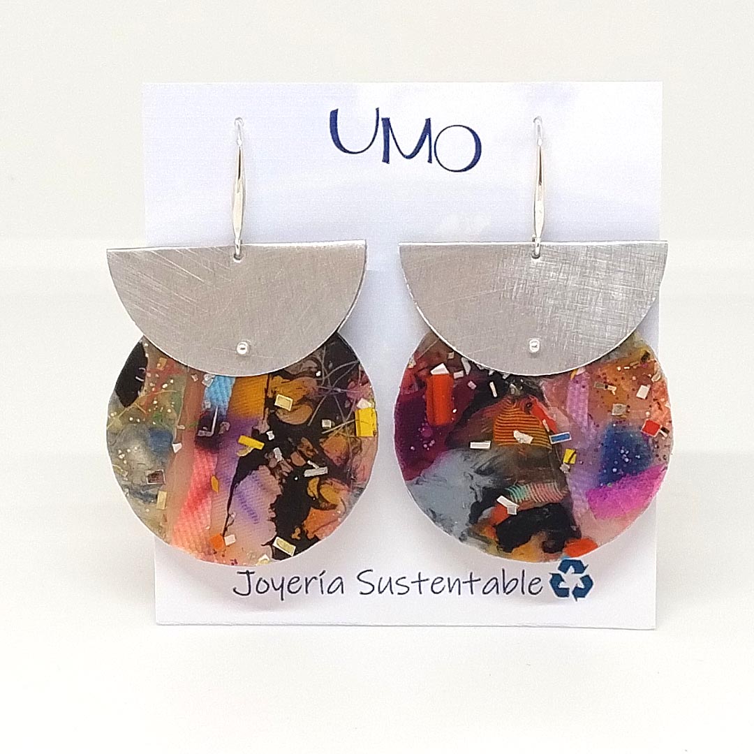 Hechos a mano desde la reutilización de bolsas plásticas y aluminio de latas de bebestibles, éstos aros de la línea abstracta, no pasarán desapercibidos...gancho de plata 9/25, Ultralivianos ; )
